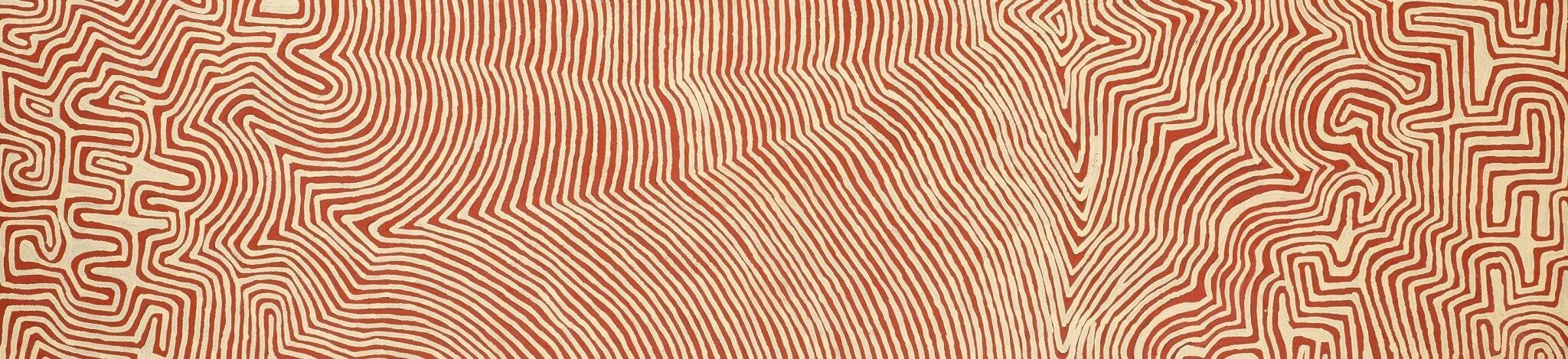 Peinture Aborigène de Ronnie Tjampitjinpa, Ngarru, 2008. L’art aborigène australien, un héritage ancestral riche en symboles et en spiritualité.