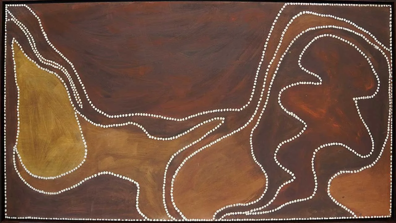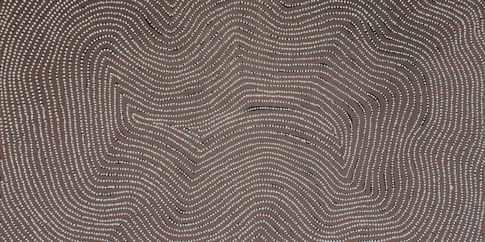 Artiste Pintupi de renom, Warlimpirrnga Tjapaltjarri crée des œuvres fascinantes où se mêlent points et lignes, donnant naissance à des compositions hypnotiques. Ses peintures retranscrivent avec force les récits ancestraux et captivent par leur complexité visuelle et leur profondeur spirituelle.