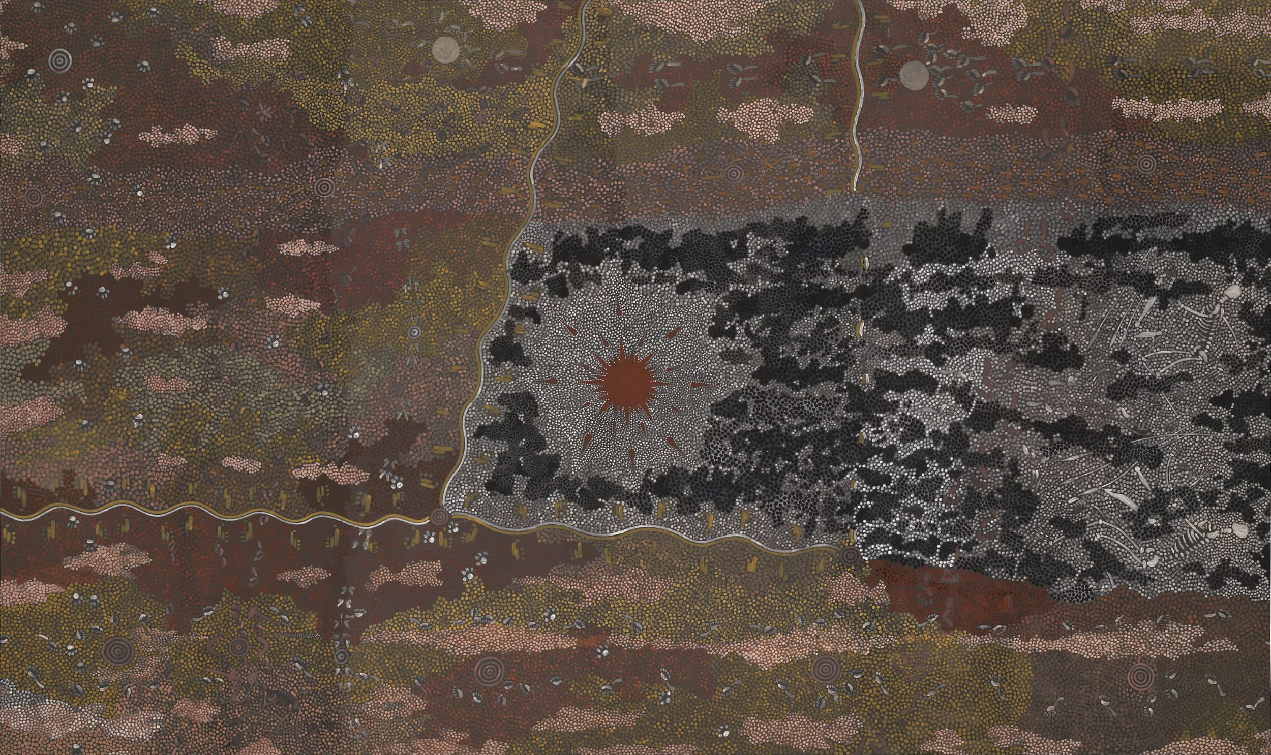 Peinture de Dorothy Napangardi, “Salt on Mina Mina”.