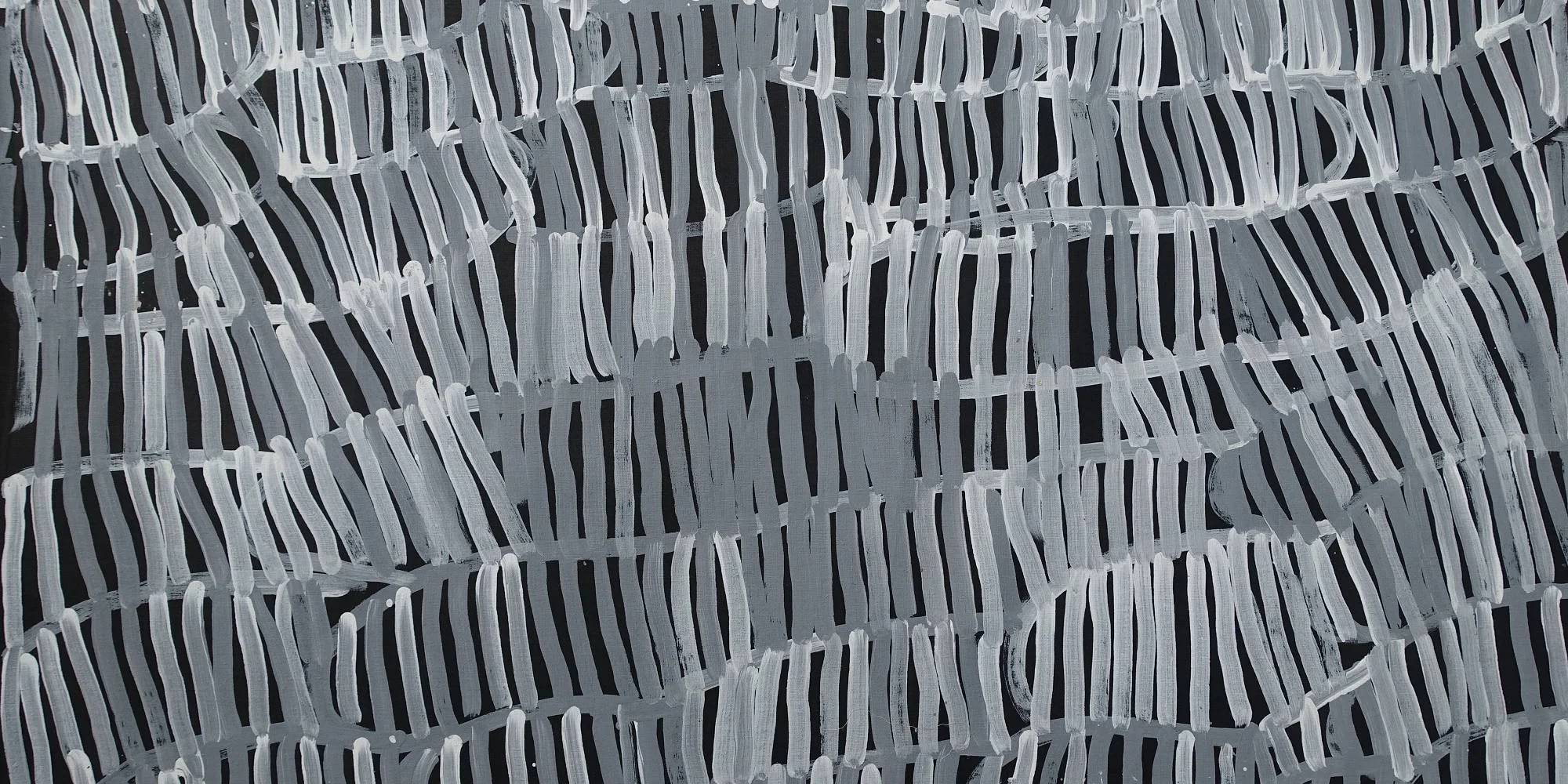 Dorothy Napangardi a marqué l’art aborigène avec ses motifs monochromes fascinants. Ses compositions, inspirées des sentiers de son territoire natal, sont une interprétation poétique et graphique du lien entre les peuples autochtones et la terre. Son travail, d’une grande délicatesse, a conquis les amateurs d’art du monde entier.