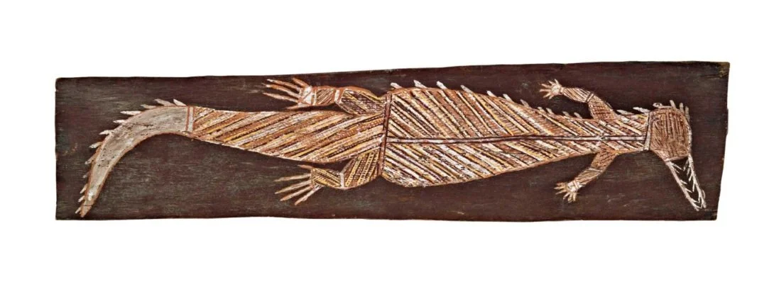 Dans les régions du nord de l’Australie, le crocodile est un animal totem puissant. Il incarne la force brute, la protection des anciens et la loi du territoire. Ses représentations dans l’art aborigène rappellent l’importance du respect des esprits des eaux et de la prudence face aux forces de la nature.