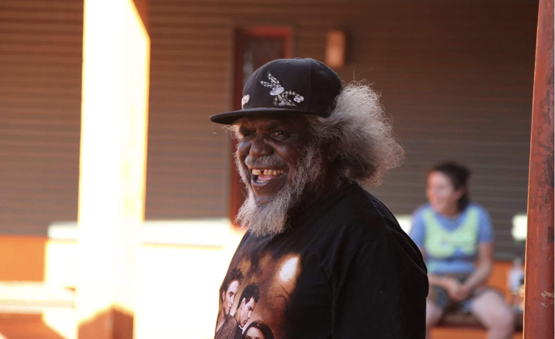 Portrait de l’artiste aborigène Joseph Jurra Tjapaltjarri prise par Papunya Tula Artists.